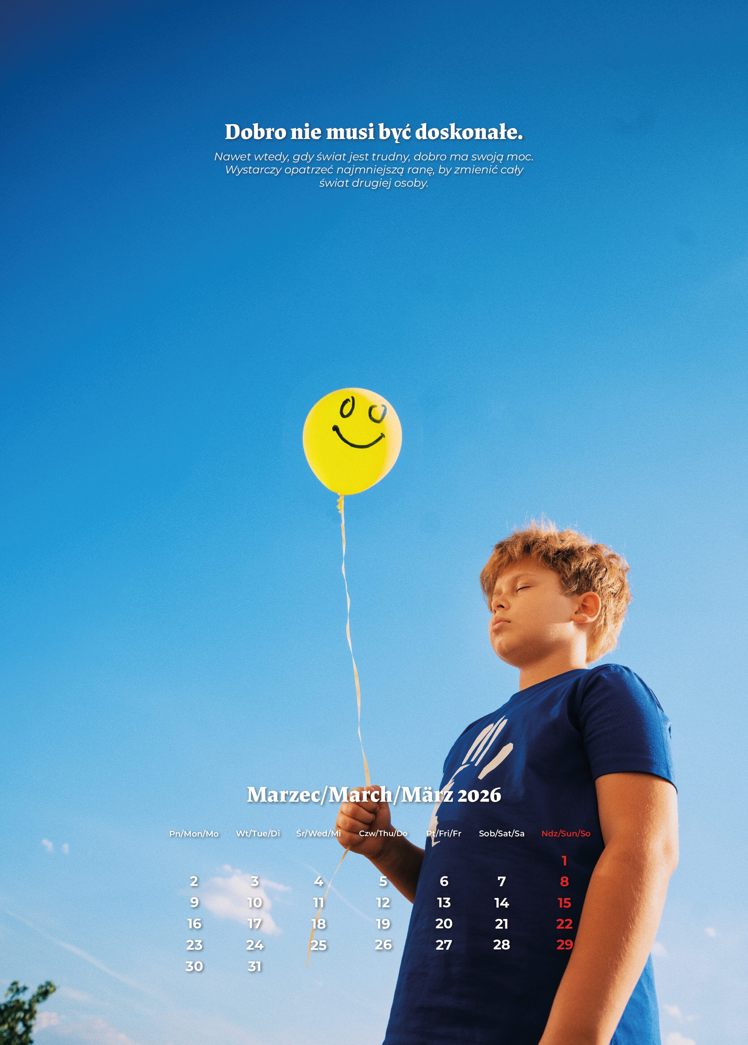 • Wyjątkowy kalendarz z przesłaniem, zawierający gesty człowieczeństwa i najważniejsze wartości życiowe